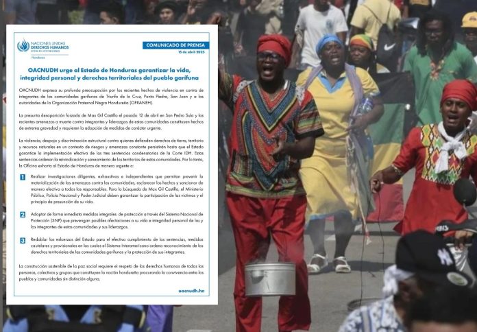 La Oficina del Alto Comisionado de las Naciones Unidas para los Derechos Humanos en Honduras (OACNUDH), expresa su profunda preocupación por los recientes hechos de violencia en contra de integrantes de las comunidades garífunas de Triunfo de la Cruz, Punta Piedra, San Juan y a las autoridades de la Organización Fraternal Negra Hondureña (OFRANEH).