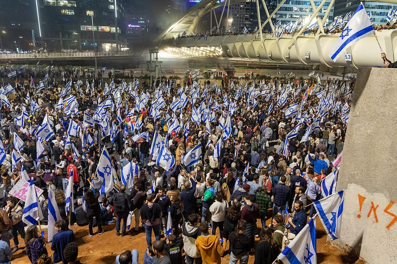 Miles de israelíes protestaron este sábado por la noche en Tel Aviv, por 15a semana consecutiva, contra la reforma judicial impulsada por el gobierno de Benjamin Netanyahu, que los manifestantes consideran como una amenaza para la democracia.