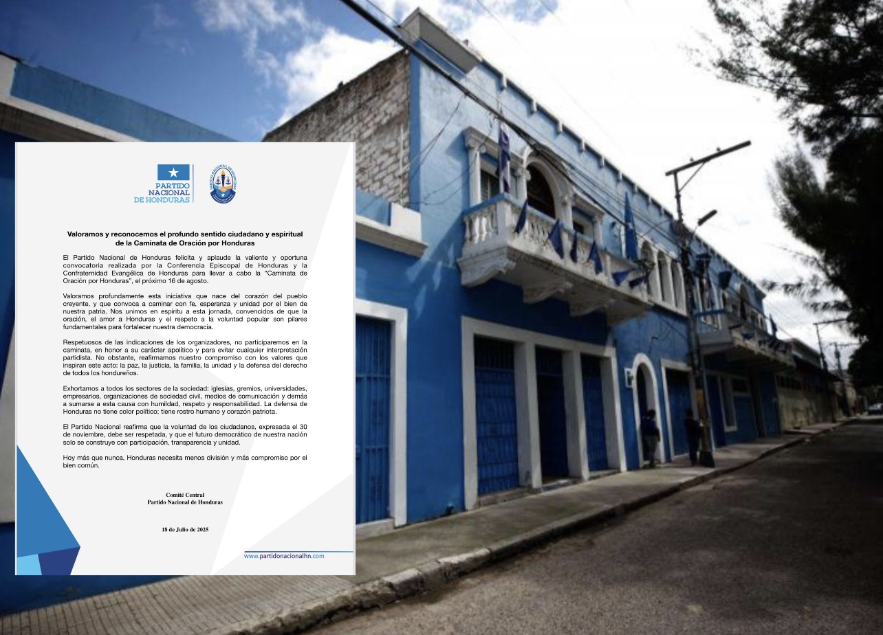 El Partido Nacional de Honduras (PNH) expresó su respaldo a la “Caminata de Oración por Honduras”, convocada por la Conferencia Episcopal y la Confraternidad Evangélica, pero anunció que no participará en el evento, previsto para el 16 de agosto.