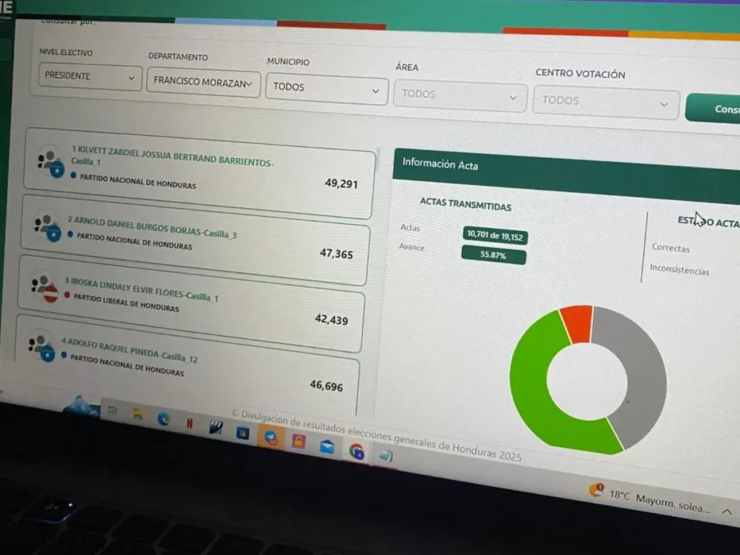 Las autoridades electorales recalcaron que estas cifras corresponden únicamente a un avance inicial, por lo que la distribución final de las 23 diputaciones de Francisco Morazán podría variar conforme se procesen todas las actas restantes.