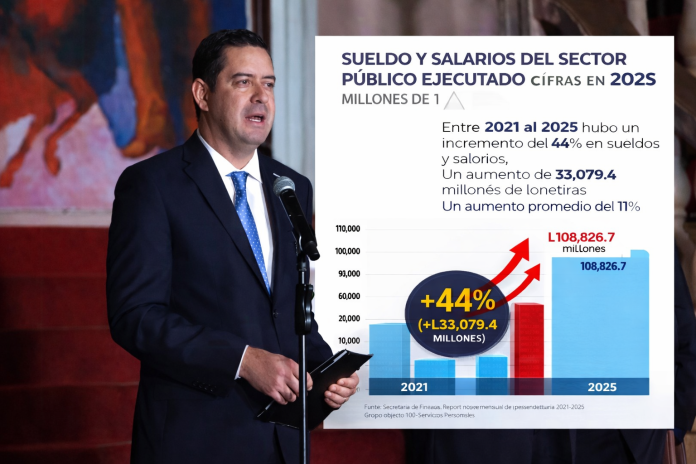 La masa salarial del sector público hondureño registró un incremento del 44 % entre 2021 y 2025, de acuerdo con datos oficiales divulgados por el ministro de la Secretaría de Finanzas (Sefin), Emilio Hernández Hércules.