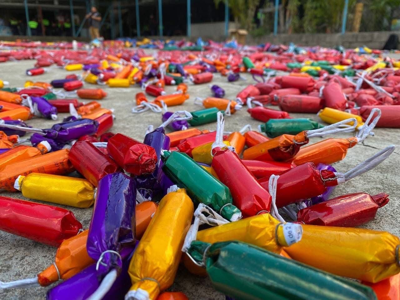 En este lugar, las autoridades incautaron una variedad de fuegos artificiales, incluidas ametralladoras y los peligrosos artefactos conocidos como “tumba casas”.