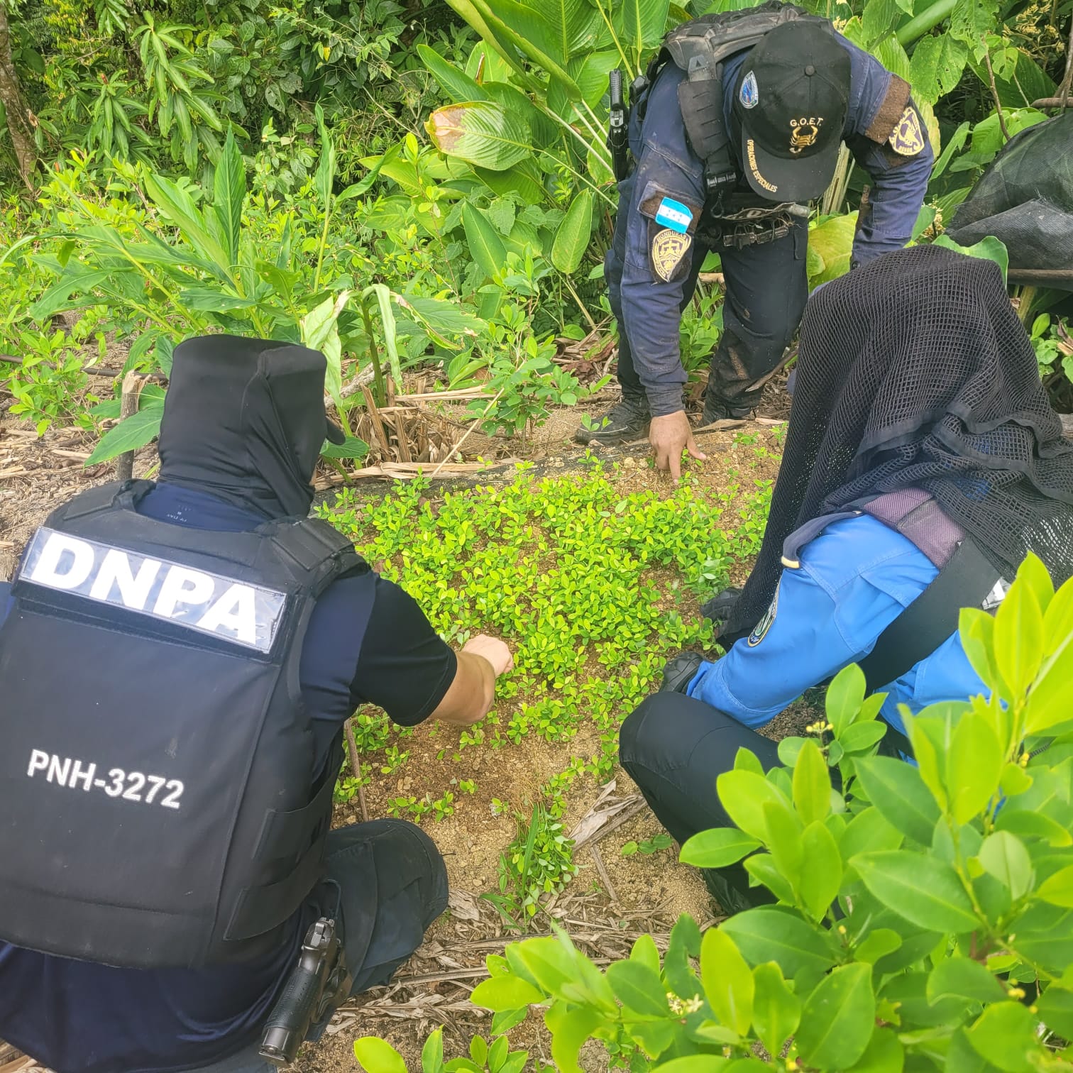 Durante el despliegue de la operación los efectivos antidrogas lograron asegurar una plantación con una extensión territorial de 12 manzanas de tierra, que cuenta con 96,000 arbustos de supuesta hoja de coca.