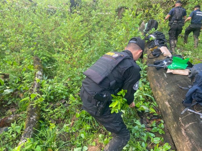 Olancho. – Dos predios cultivados con arbustos de coca fueron erradicados y destruidos por la Policía Nacional el día de hoy en un sector montañoso del municipio de Catacamas, departamento de Olancho.