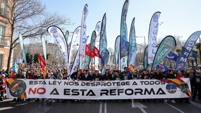 (RT)- Miles de policías y de guardias civiles se han manifestado este sábado en Madrid (España) para mostrar su rechazo a la reforma impulsada por el Gobierno y sus socios de investidura de la Ley de Seguridad Ciudadana de 2015, más conocida como ‘ley mordaza’, informa Europa Press.