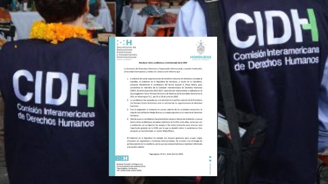 A través de un comunicado, detalló que la candidatura del doctor Joaquín Mejía Rivera fue apoyada por la presidenta Xiomara Castro tras la solicitud de organizaciones de derechos humanos.