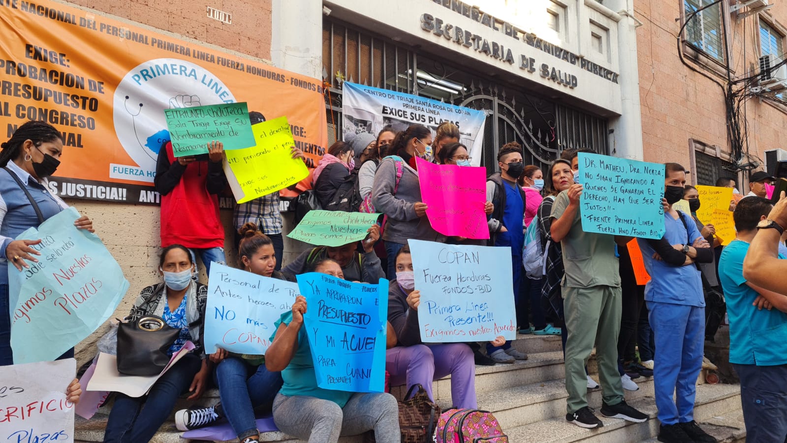 Personal de salud del denominado Frente de Primera Línea se tomó por segundo día consecutivo las instalaciones de la Secretaría de Salud (Sesal) en Tegucigalpa.