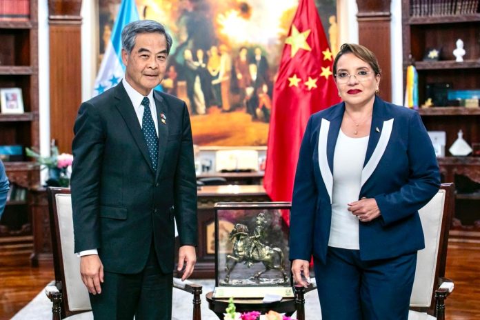 La presidenta de la República, Xiomara Castro, se reunió con el vicepresidente de la Conferencia Consultiva Política del Pueblo Chino y presidente de la Fundación GX, Leung Chun Ying, con quien dialogó sobre temas de salud, educación y otros de interés bilateral.