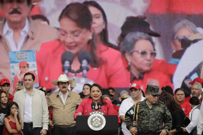 «Debemos sentar las bases del proyecto del socialismo democrático, mi Gobierno en año y medio tiene grandes logros a favor del pueblo. En primer lugar estamos desmontando a paso firme el régimen dictatorial del saqueo y el despojo al que fuimos sometidos en la última década», enfatizó la mandataria hondureña.