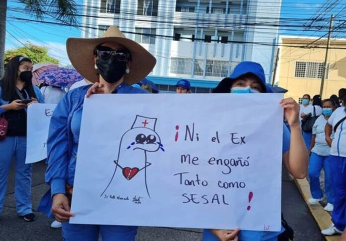 El miércoles las enfermeras marcharon desde el bulevar Morazán de la capital hasta el edificio de la Sesal en el centro de la ciudad para exigir sus demandas y poder ser escuchadas.