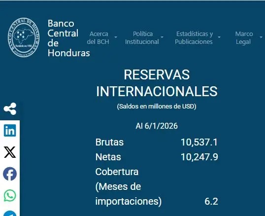 Las declaraciones de Herrera, surgen luego de que, el Banco Central de Honduras (BCH), informó en su portal web, que el nivel de las Reservas Internacionales Netas (RIN), en 10 mil 247.9 millones de dólares, hasta el 6 de enero de 2026, con lo que cubre 6.2 meses de importación.
