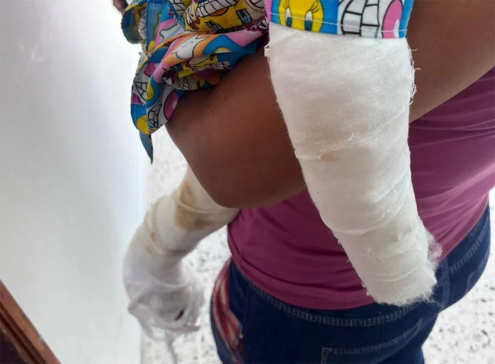 La joven mujer, dijo que, el niño, “de la boquita ya está bien porque le vienen a echar cremita, de los piecitos y las manos no se han recuperado”.