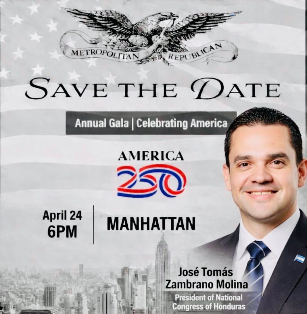 - El presidente del Congreso Nacional recibirá el premio “Liberty over Socialism” en una gala del Metropolitan Republican Club en Manhattan