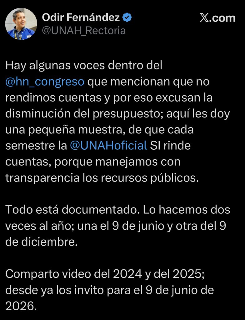 Fernández rechazó esa versión y aseguró que la UNAH sí cumple con procesos formales, periódicos y documentados de transparencia en el manejo de los recursos públicos.