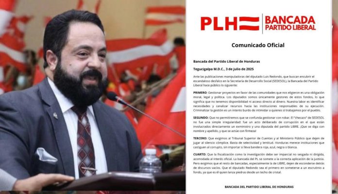 La bancada del Partido Liberal de Honduras (PLH) respondió con dureza a las acusaciones del presidente del Congreso Nacional, Luis Redondo, quien recientemente señaló a varios diputados liberales de haber gestionado recursos del controvertido Fondo Social, insinuando posibles irregularidades.