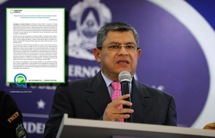 Ayala Alvarenga es acusado de orquestar una defraudación al Estado de Honduras mediante la compra fraudulenta de siete camiones para el Benemérito Cuerpo de Bomberos, con un costo total de L 81,010,658.28.