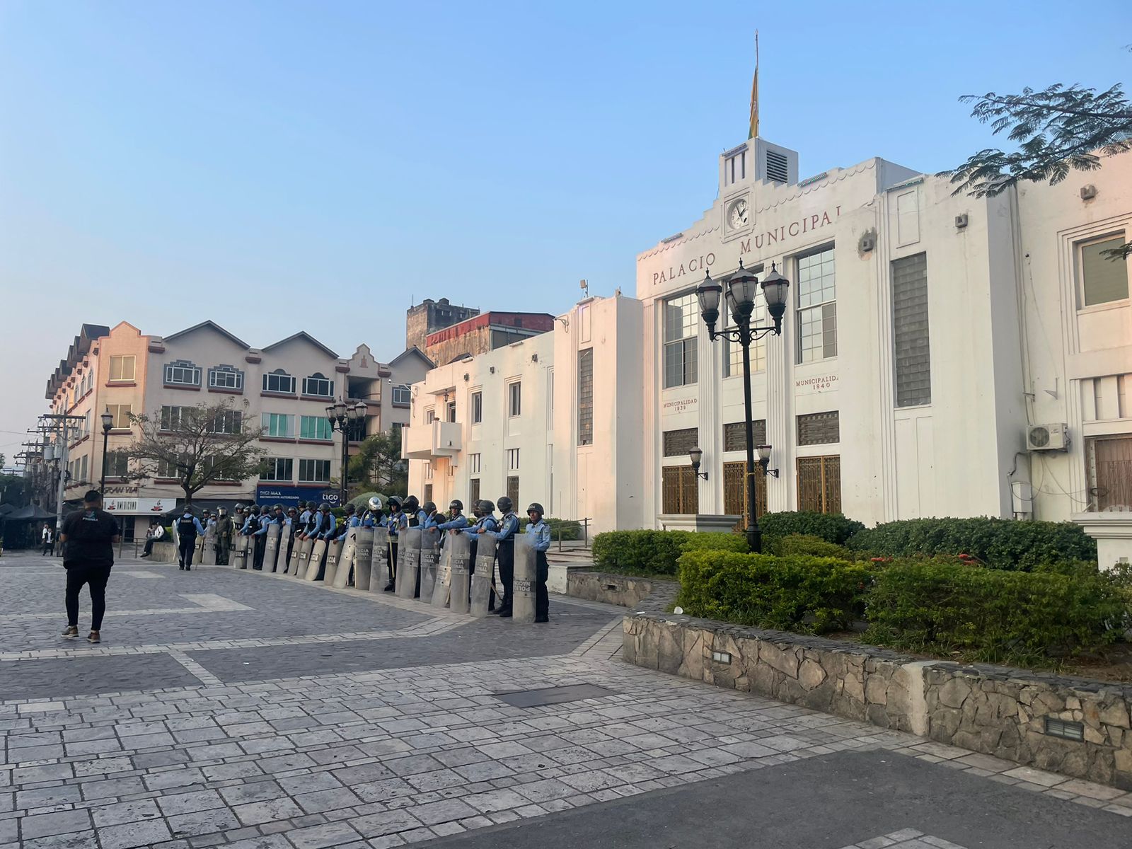Con un fuerte resguardo policial amanecieron las instalaciones de la Alcaldía Sampedrana, ante amenazas de protestas por colectivos del Partido Libertad y Refundación (Libre), en contra del alcalde Roberto Contreras.
