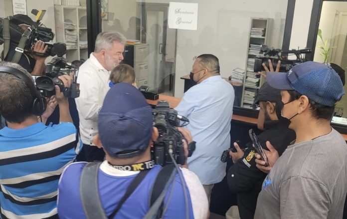 El alcalde de San Pedro Sula, Roberto Contreras, llegó a los juzgados sampedranos para interponer una querella en contra del vicealcalde de esa misma ciudad, Omar Menjívar.