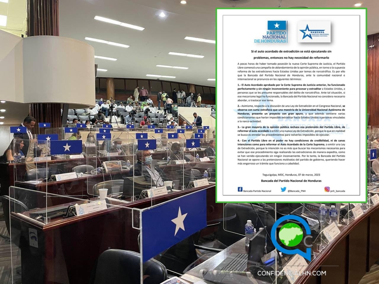 La bancada del Partido Nacional se pronunció este martes a través de un comunicado en el que señala que, si el auto acordado de extradición se está ejecutando sin problemas, entonces no hay necesidad de reformarlo.
