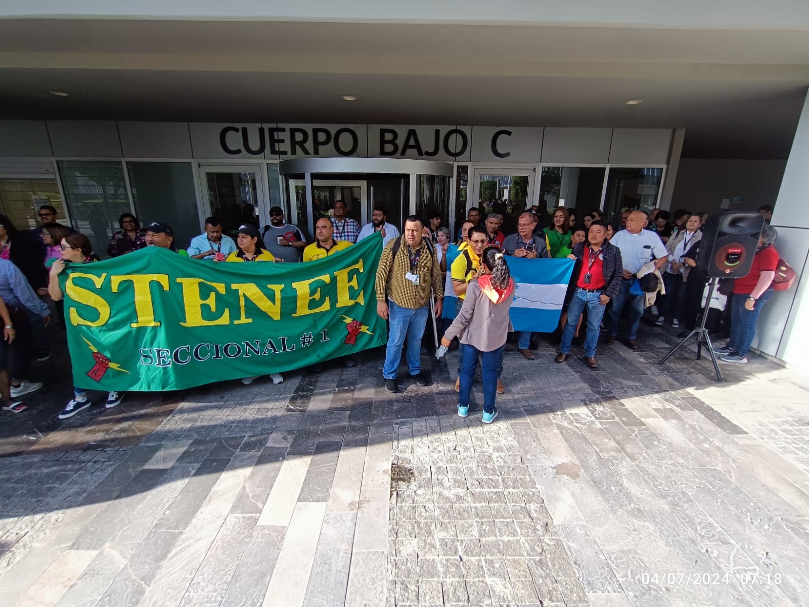 El presidente del STENEE concluyó su declaración recordando que los trabajadores no han recibido un ajuste salarial, a pesar de haber ganado la demanda. «Seguiremos en pie de lucha hasta que se nos paguen nuestros derechos».