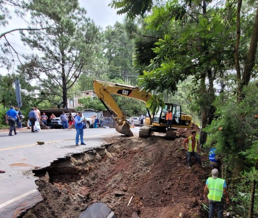 Equipos de la Secretaría de Infraestructura y Transporte (SIT), junto con personal de la Comisión Permanente de Contingencias (Copeco), se encuentran realizando labores para evacuar el agua acumulada bajo el asfalto y evitar un colapso mayor del subsuelo.
