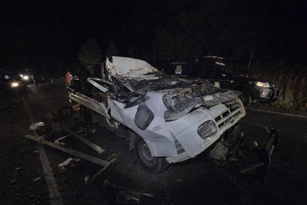 Según los primeros reportes, el camioncito habría colisionado contra la parte trasera de un camión cargado con madera. El conductor de la rastra presuntamente abandonó el lugar tras el choque, dejando únicamente evidencias del encontronazo sobre la cinta asfáltica.
