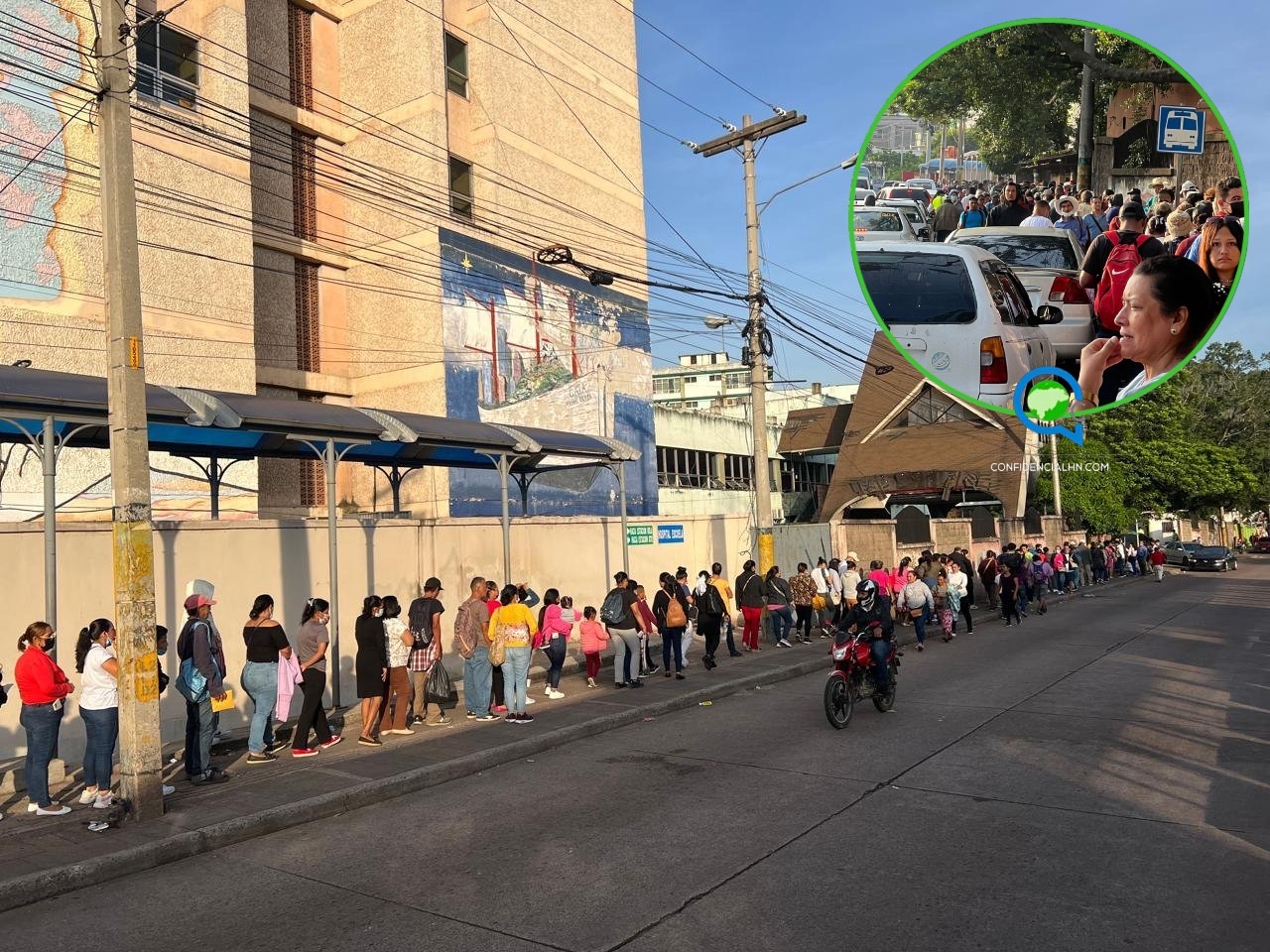 Luego del largo feriado por la Semana Morazánica, se reporta este lunes una enorme fila de personas en busca de atención médica en el Hospital Escuela.
