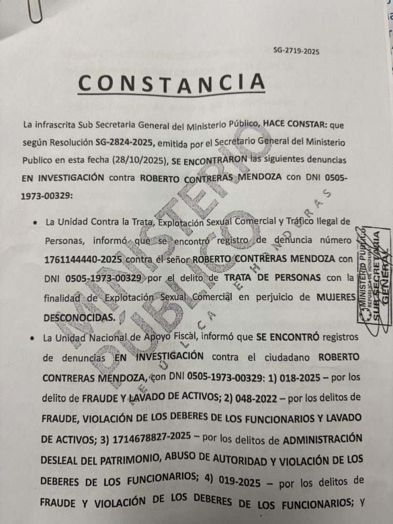 Mora puntualizó que, “antes de ser alcalde ya tenía varias investigaciones, en efecto, esta es una constancia que se le dio a su apoderado legal porque él la solicitó y ahí están detalladas las líneas que tenemos, esto no quiere decir que haya órdenes de captura, son investigaciones en curso, la tiene él en su poder, tiene por trata de personas sobre mujeres desconocidas, fraude, lavado de activos, entre otros”.