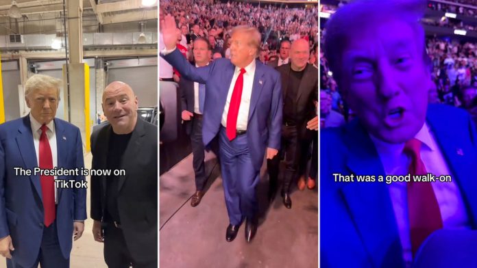La primera publicación de Trump en la plataforma fue un video de 13 segundos, que parecía haber sido filmado en un evento de UFC celebrado en Nueva Jersey al que él mismo asistió. En las imágenes, se lo puede ver junto al presidente de UFC, Dana White, quien anuncia: «El presidente ahora está en TikTok». «Es un honor para mí», responde Trump, seguido de un montaje del exmandatario saludando a sus fanáticos en la arena