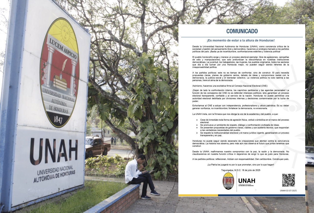 La Universidad Nacional Autónoma de Honduras (UNAH) hizo este viernes un llamado enérgico a los partidos políticos del país a poner fin a la incertidumbre, las confrontaciones estériles y la violencia política que han marcado el ambiente preelectoral.