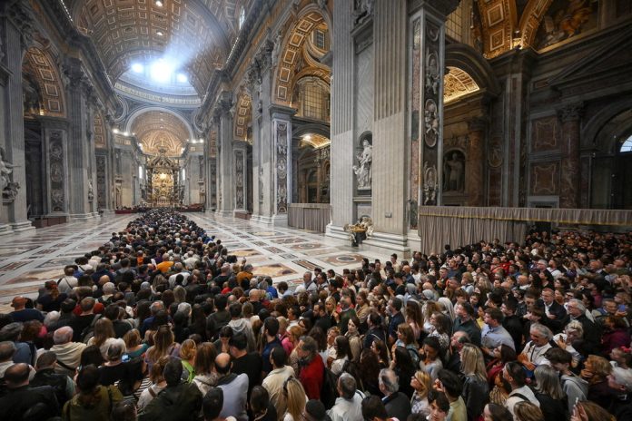Unas 150.000 personas han pasado ante el féretro del papa Francisco en la basílica vaticana para despedirle, durante los últimos tres días y hasta el mediodía de este viernes, víspera de su funeral.