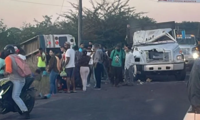 Heridas resultaron varias personas, en un fuerte accidente vial registrado este viernes, entre un bus y un camión en Choluteca.