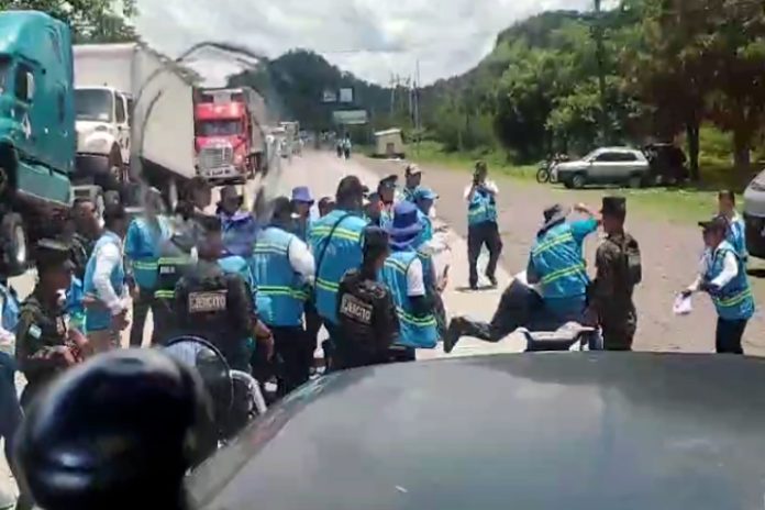 Empleados del Instituto Hondureño del Transporte Terrestre (IHTT), se enfrentan en plena carretera al sur, tras discutir, y no logran consensos, se fueron a los golpes, un conductor de vehículo de carga pesada grabo las escenas.