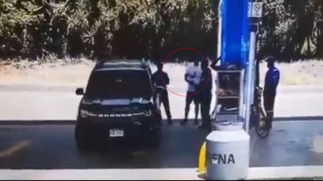 Un video captado por una cámara de seguridad que fue difundido este domingo, muestra cómo un hombre está en la gasolinera con su vehículo, mientras realiza una conversación con los trabajadores del lugar.