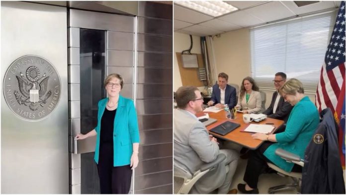 A través de un video difundido en redes sociales, Dogu recorrió las instalaciones de la Embajada de Estados Unidos en Caracas, donde también se observó el recibimiento del personal diplomático, al tiempo que expuso los planes de corto, mediano y largo plazo que guiarán la nueva etapa de la misión estadounidense en el país.