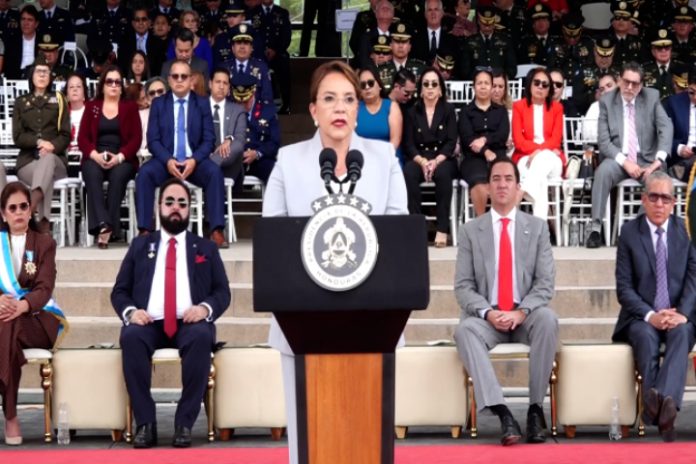 “Ahora los cómplices de la narcodictadura que guardaron silencio ante la depreciación y las ilegales concesiones, el tráfico de droga y saqueos, quieren utilizar las banderas de las luchas populares para evitar la construcción del Centro de Reclusión de Emergencia (CRE)», declaró este miércoles, la presidenta Xiomara Castro, durante la ceremonia de ascensos de oficiales militares.