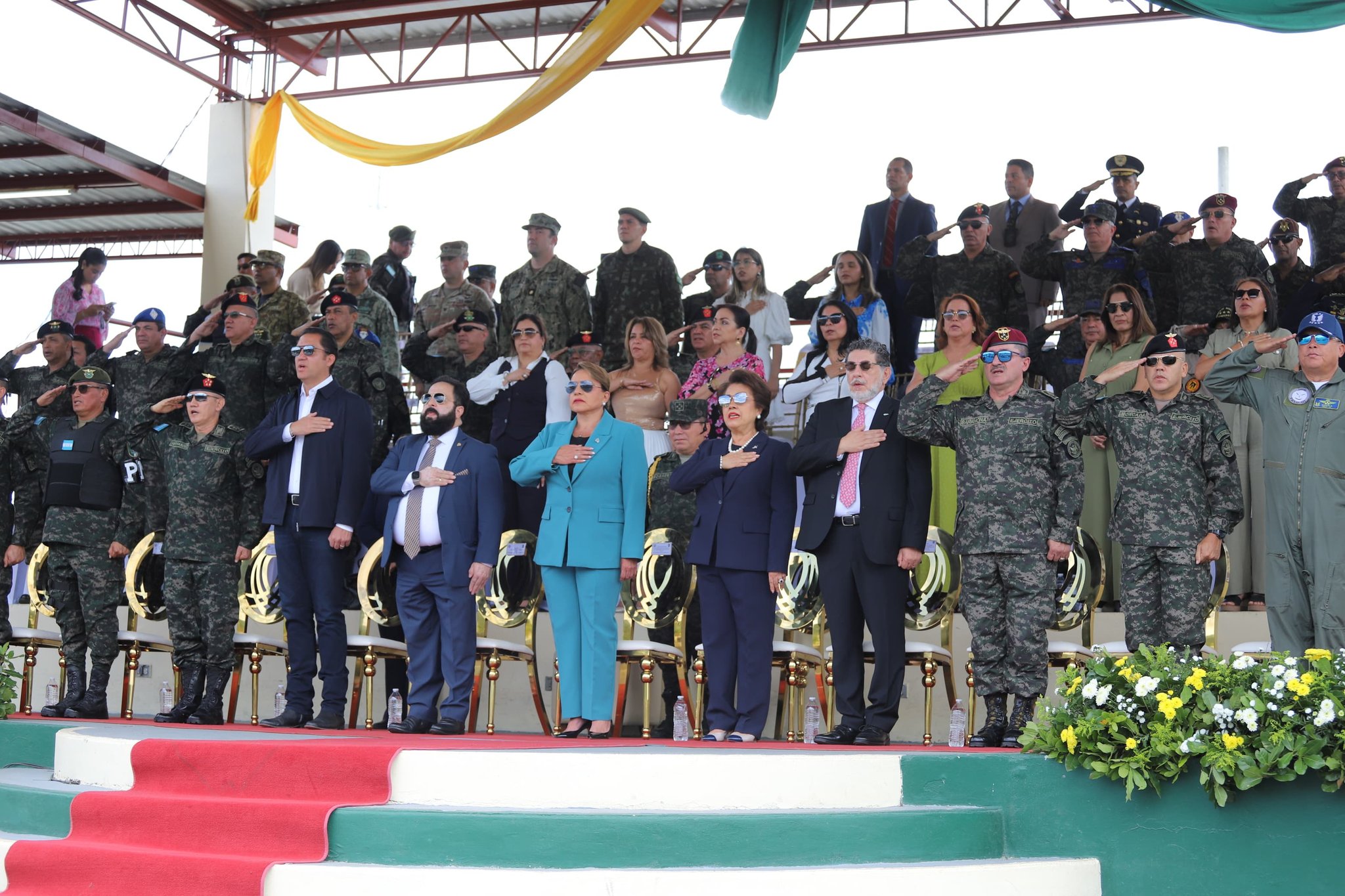 En su intervención, Castro resaltó los logros en materia de seguridad. Afirmó que la PMOP no solo apoya el plan de solución contra el crimen organizado, sino que también enfrenta la crisis ambiental con estrategias como la “cero deforestación”, especialmente en zonas críticas como Olancho y La Mosquitia.